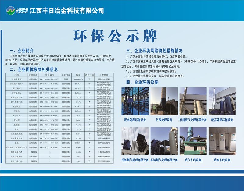 江西豐日冶金科技有限公司成立于2012年3月,注冊(cè)資金15000萬元,現(xiàn)為山東環(huán)保集團(tuán)旗下控股子公司,落戶于江西省宜春市袁州醫(yī)藥工業(yè)園。公司年回收再生十萬噸廢舊鉛酸蓄電池項(xiàng)目占地62.41畝,總建筑面積42180㎡,總投資3.5億元,于2020年5月份投入生產(chǎn),自生產(chǎn)以來運(yùn)行穩(wěn)定,年產(chǎn)值達(dá)10億元以上,年納稅1億元以上。